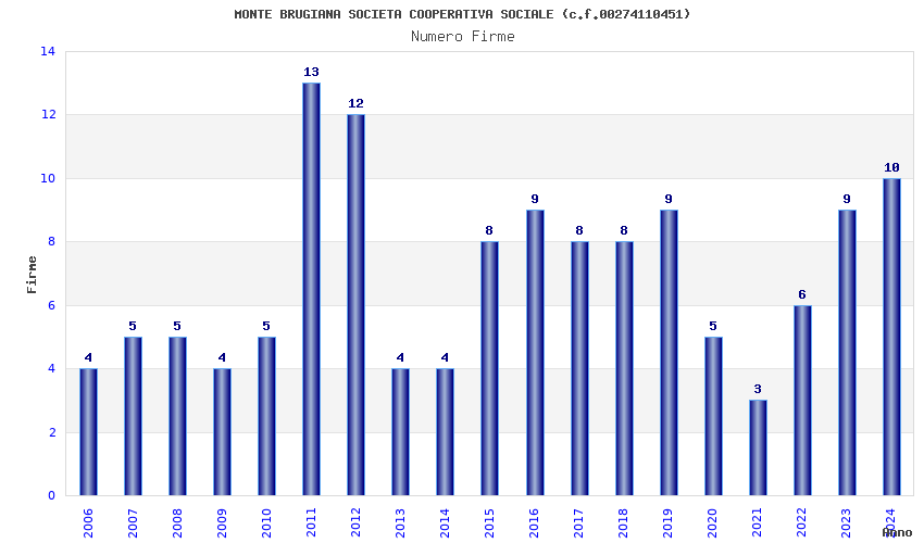| Anno | Firme | Importi | Media | Naz. | Reg. | Prov. | Comu. |