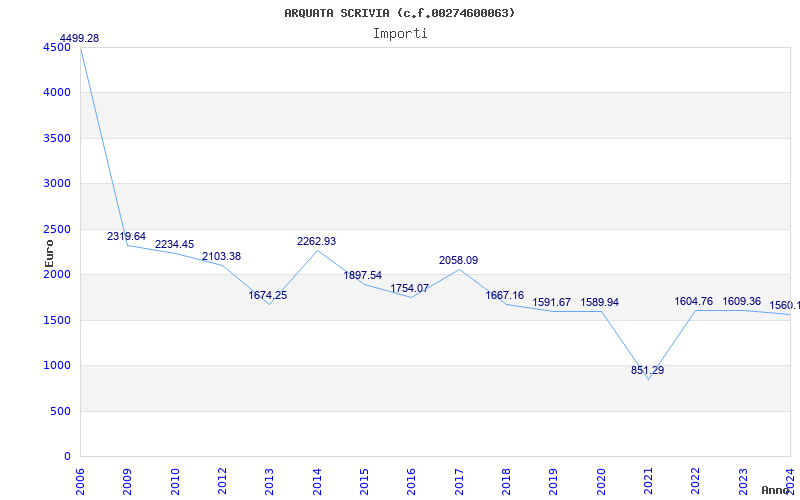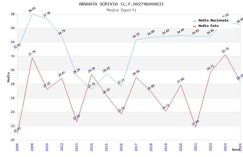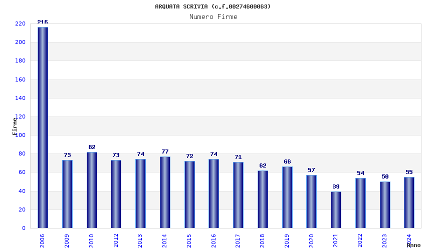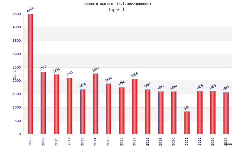 | Anno | Firme | Importi | Media | Naz. | Reg. | Prov. | Comu. |