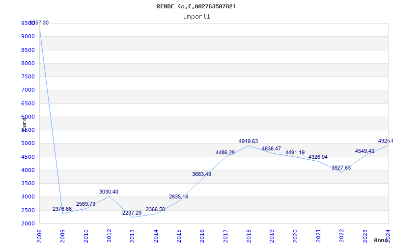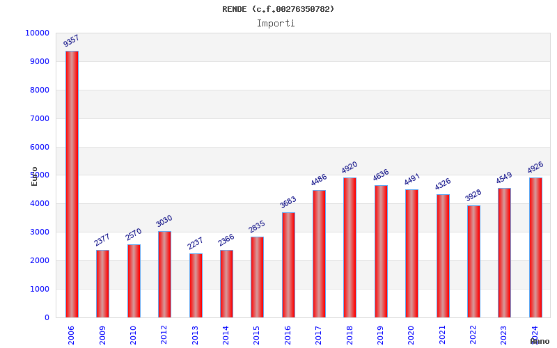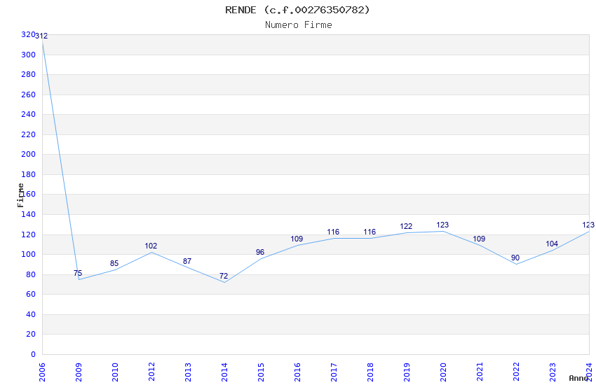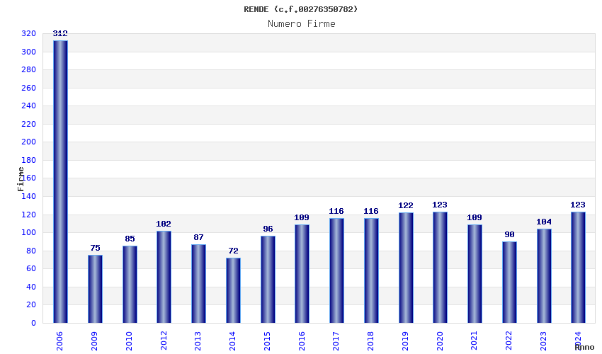 | Anno | Firme | Importi | Media | Naz. | Reg. | Prov. | Comu. |