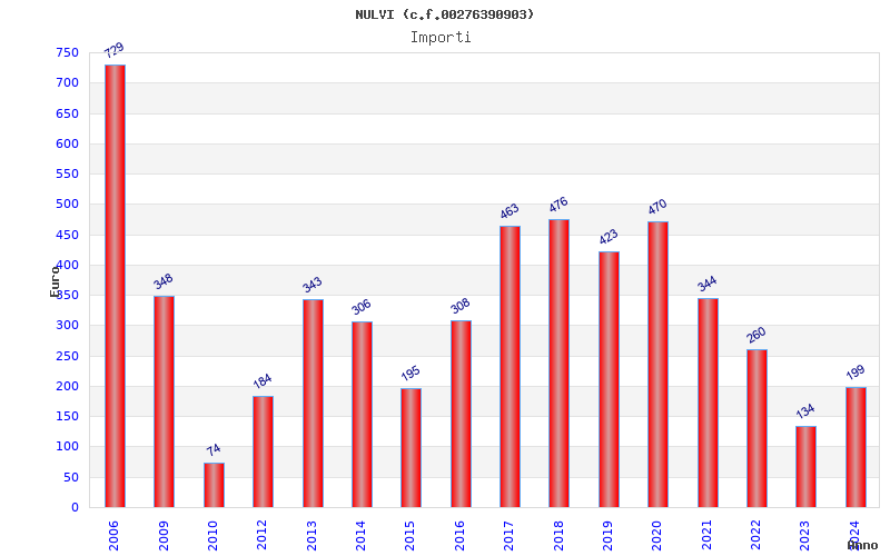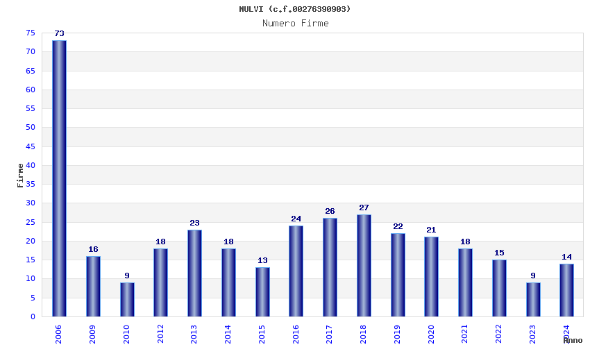 | Anno | Firme | Importi | Media | Naz. | Reg. | Prov. | Comu. |