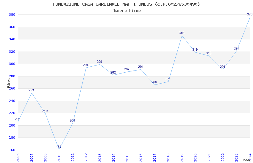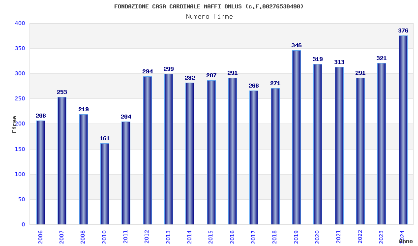 | Anno | Firme | Importi | Media | Naz. | Reg. | Prov. | Comu. |