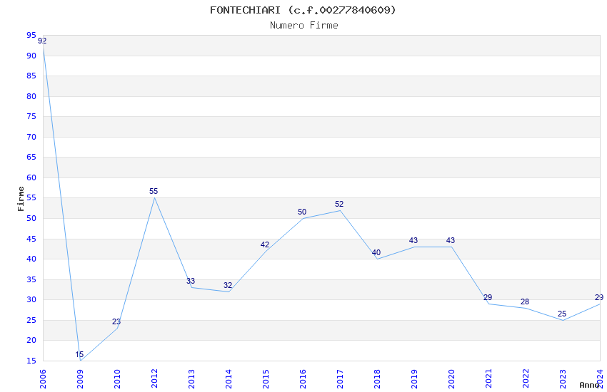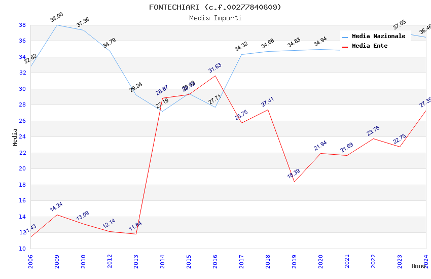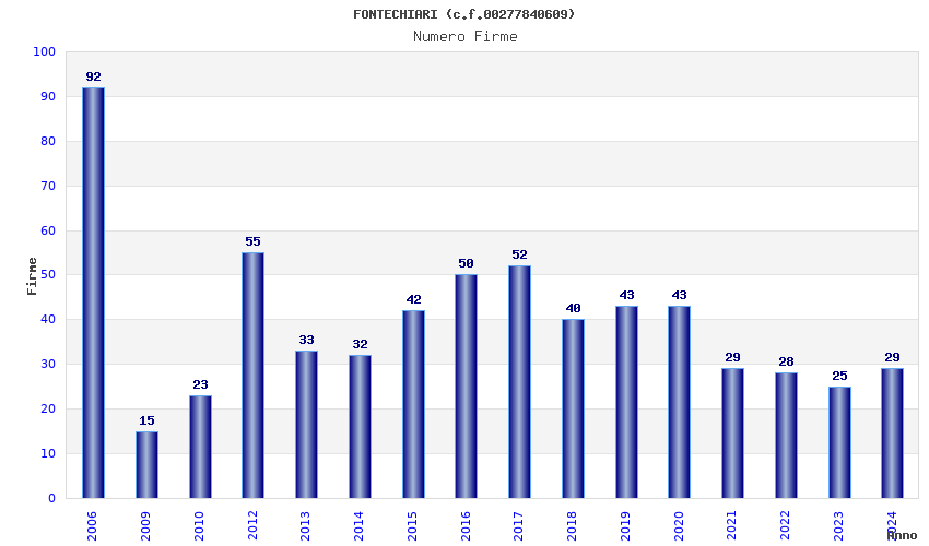 | Anno | Firme | Importi | Media | Naz. | Reg. | Prov. | Comu. |