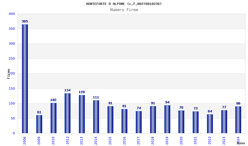 Anno Firme Importi Media Naz. Reg. Prov. Comu.