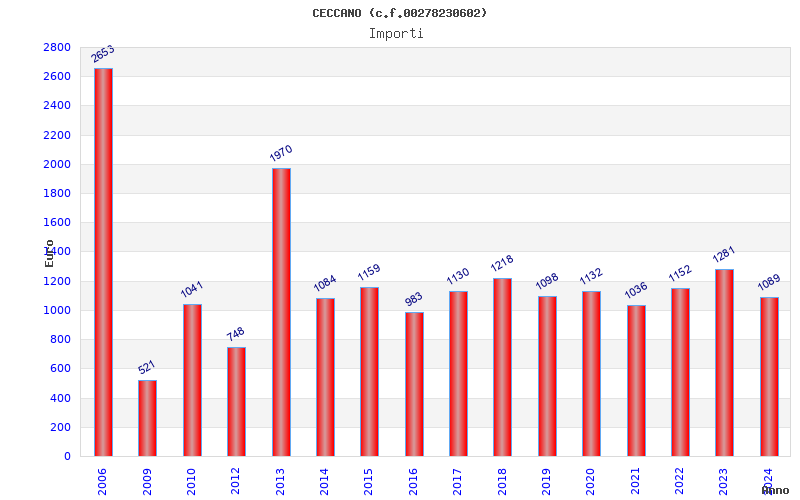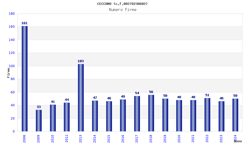 | Anno | Firme | Importi | Media | Naz. | Reg. | Prov. | Comu. |
