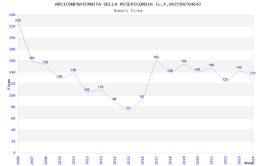| 2024 | 134 | 3.067,75 | 22,89 | 17.037 | 1.041 | 107 | 18 |