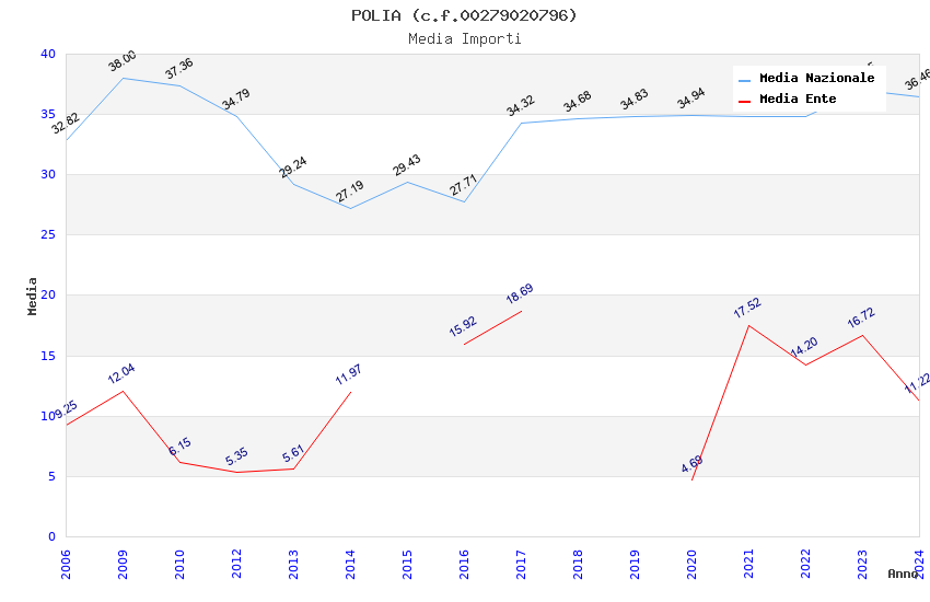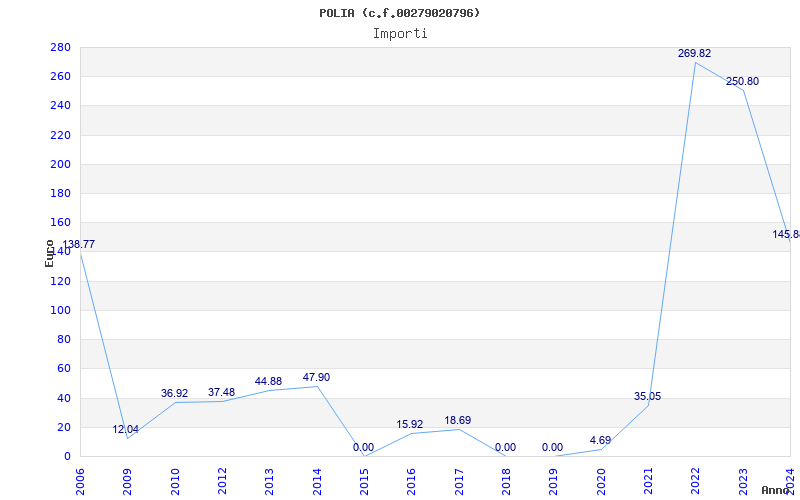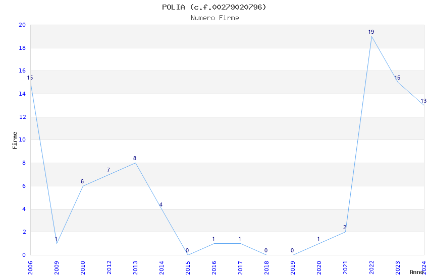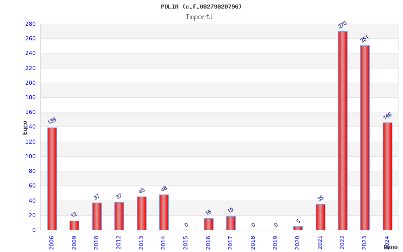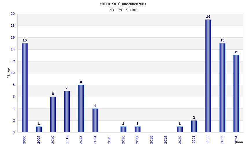 | Anno | Firme | Importi | Media | Naz. | Reg. | Prov. | Comu. |