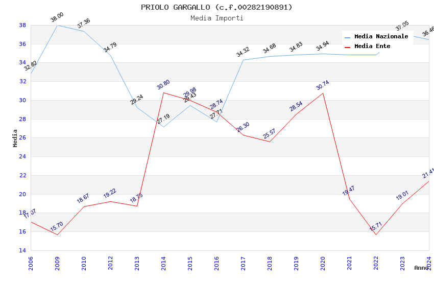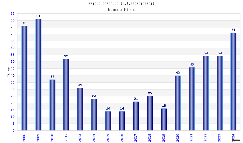 | Anno | Firme | Importi | Media | Naz. | Reg. | Prov. | Comu. |