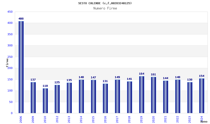 | Anno | Firme | Importi | Media | Naz. | Reg. | Prov. | Comu. |