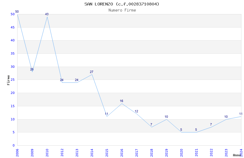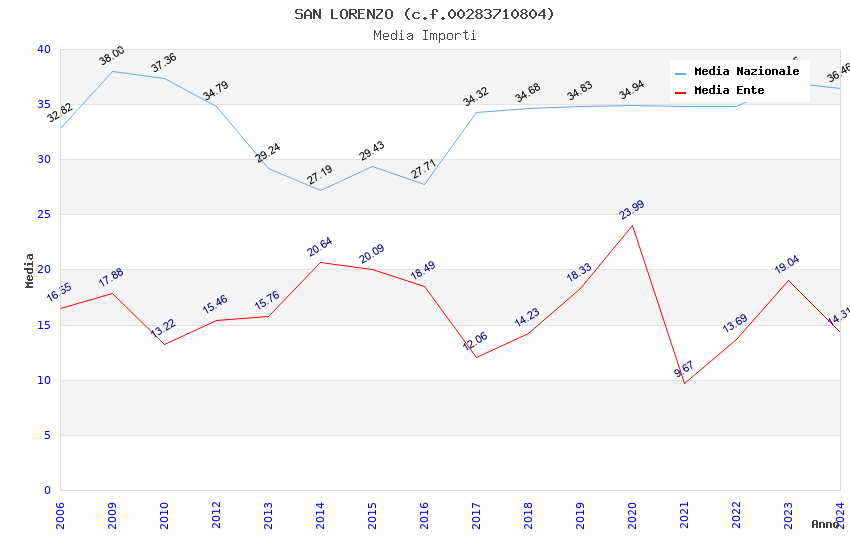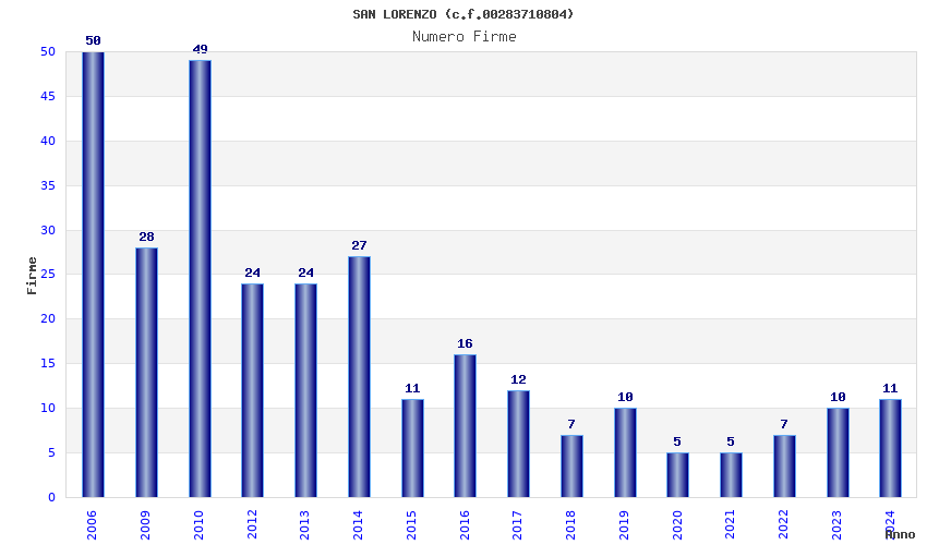| Anno | Firme | Importi | Media | Naz. | Reg. | Prov. | Comu. |