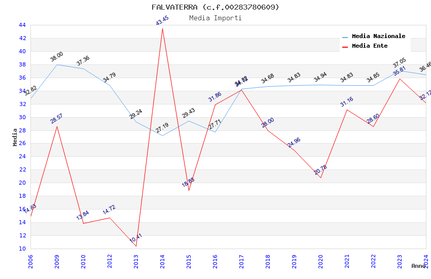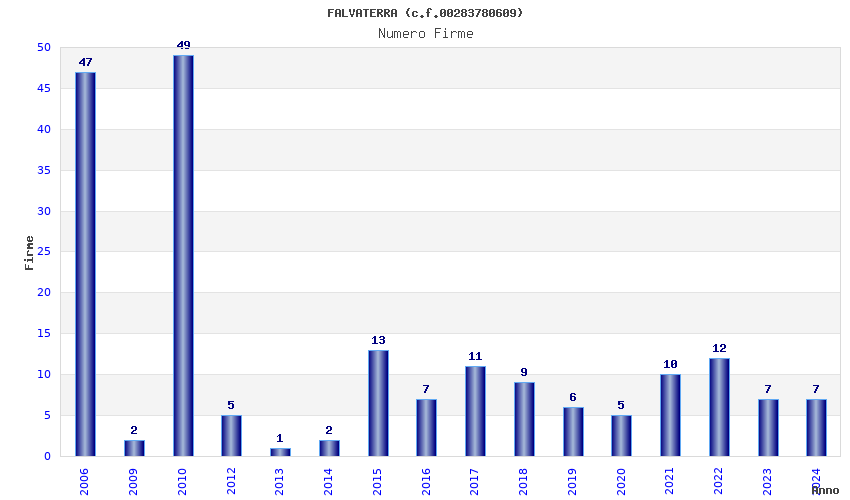 | Anno | Firme | Importi | Media | Naz. | Reg. | Prov. | Comu. |