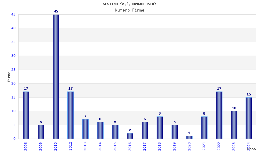 Anno Firme Importi Media Naz. Reg. Prov. Comu.