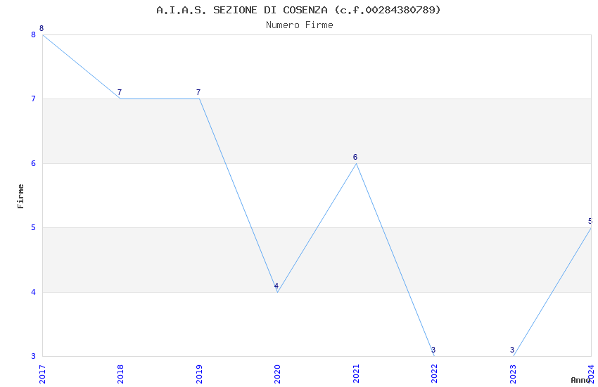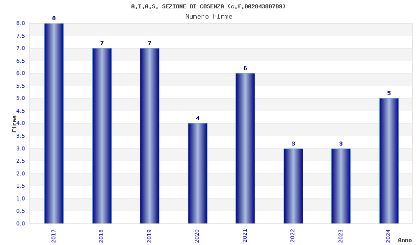 | Anno | Firme | Importi | Media | Naz. | Reg. | Prov. | Comu. |