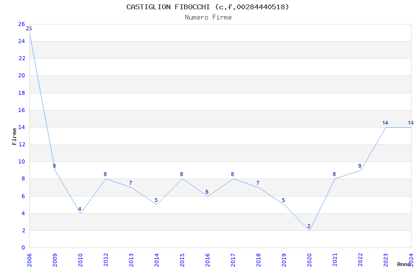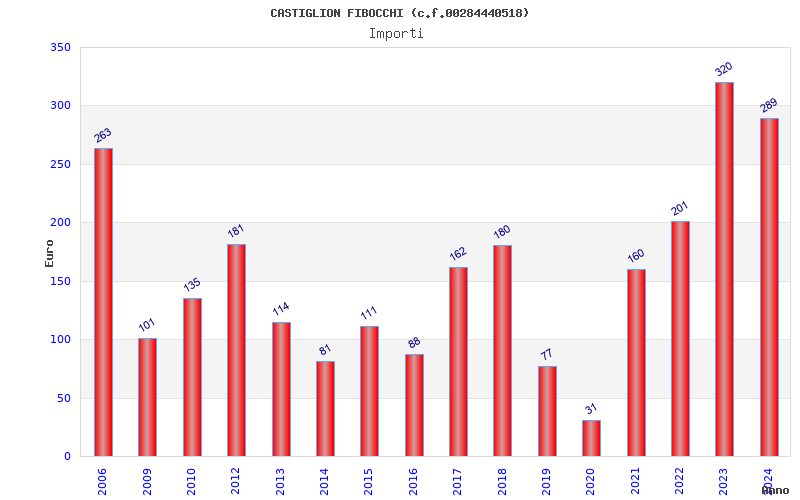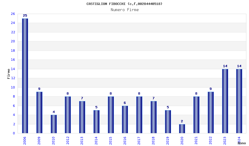 | Anno | Firme | Importi | Media | Naz. | Reg. | Prov. | Comu. |