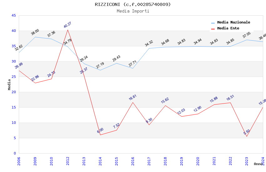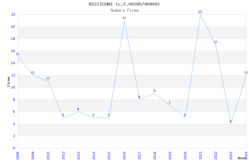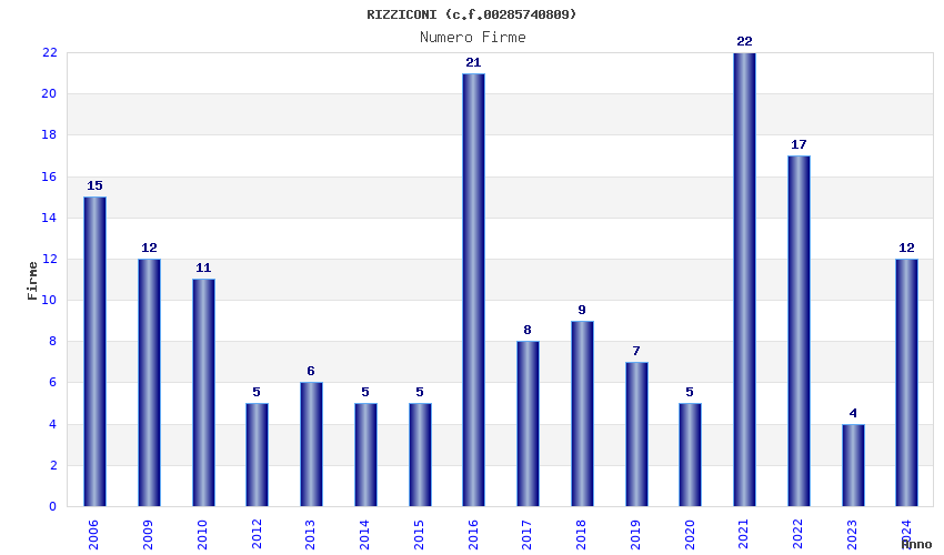 | Anno | Firme | Importi | Media | Naz. | Reg. | Prov. | Comu. |