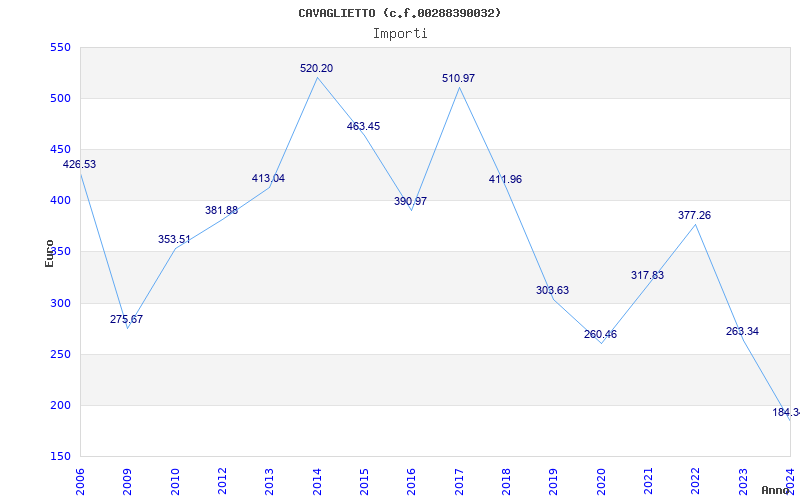 | Anno | Firme | Importi | Media | Naz. | Reg. | Prov. | Comu. |