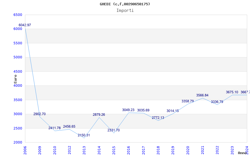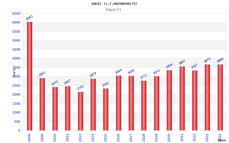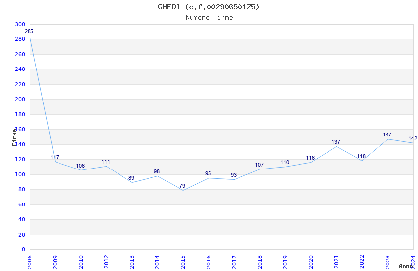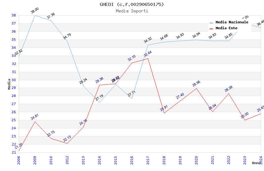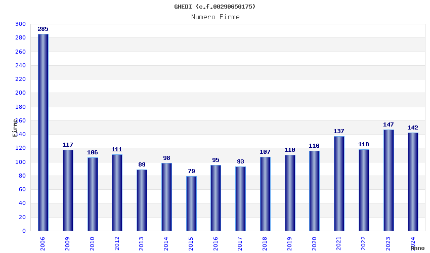 | Anno | Firme | Importi | Media | Naz. | Reg. | Prov. | Comu. |