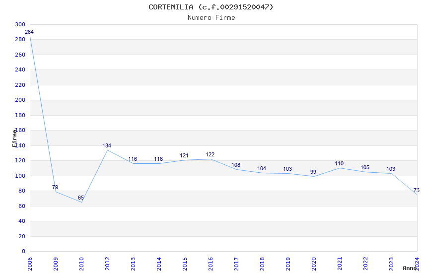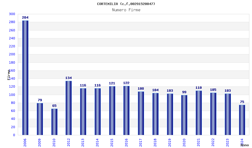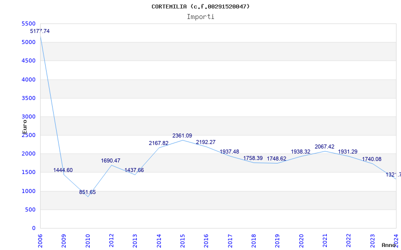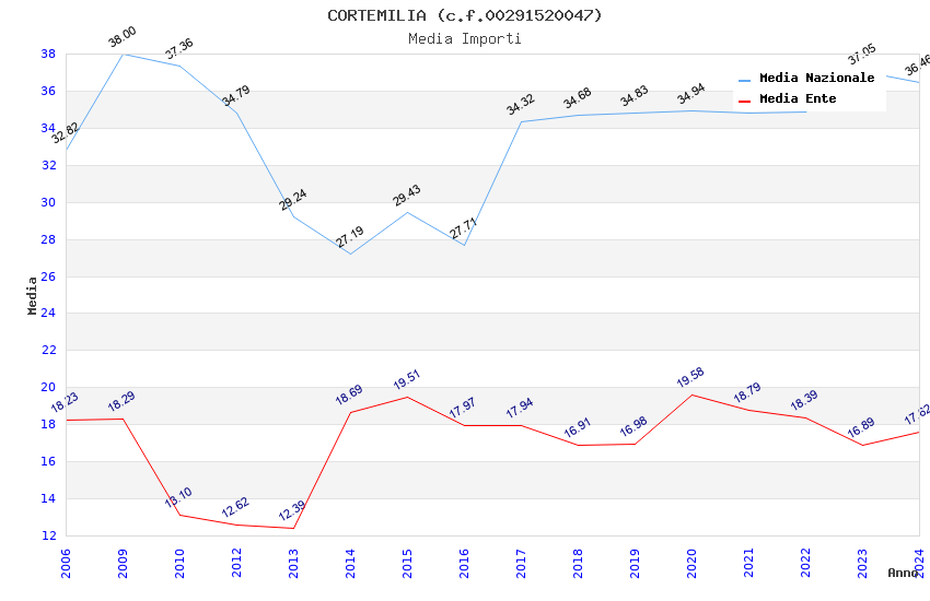 | Anno | Firme | Importi | Media | Naz. | Reg. | Prov. | Comu. |