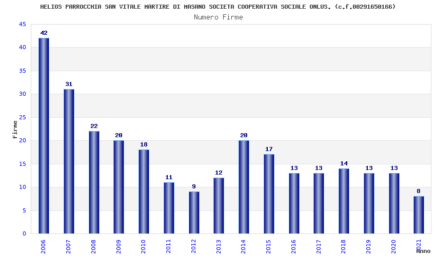 | Anno | Firme | Importi | Media | Naz. | Reg. | Prov. | Comu. |