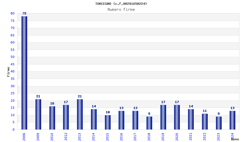 | Anno | Firme | Importi | Media | Naz. | Reg. | Prov. | Comu. |