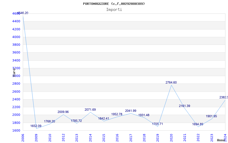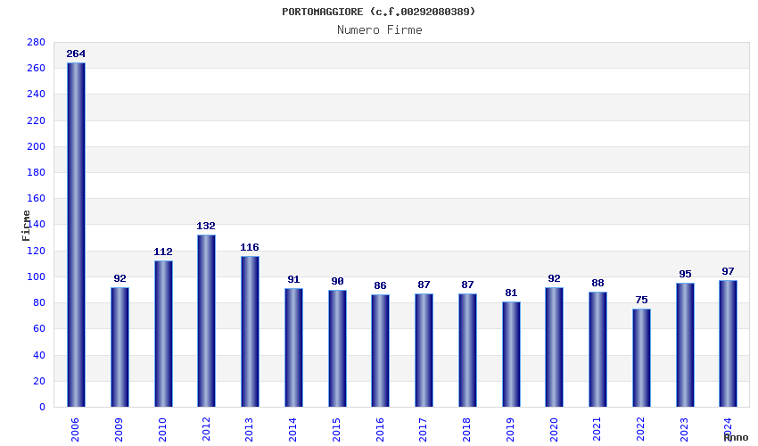 | Anno | Firme | Importi | Media | Naz. | Reg. | Prov. | Comu. |