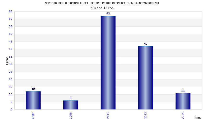 | Anno | Firme | Importi | Media | Naz. | Reg. | Prov. | Comu. |