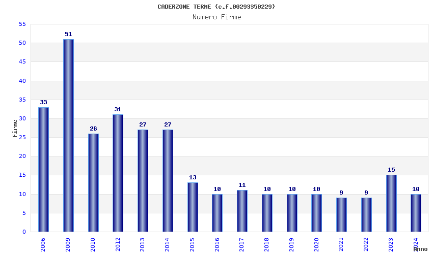 | Anno | Firme | Importi | Media | Naz. | Reg. | Prov. | Comu. |