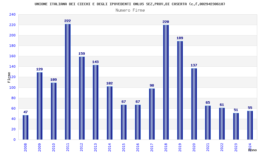 | Anno | Firme | Importi | Media | Naz. | Reg. | Prov. | Comu. |