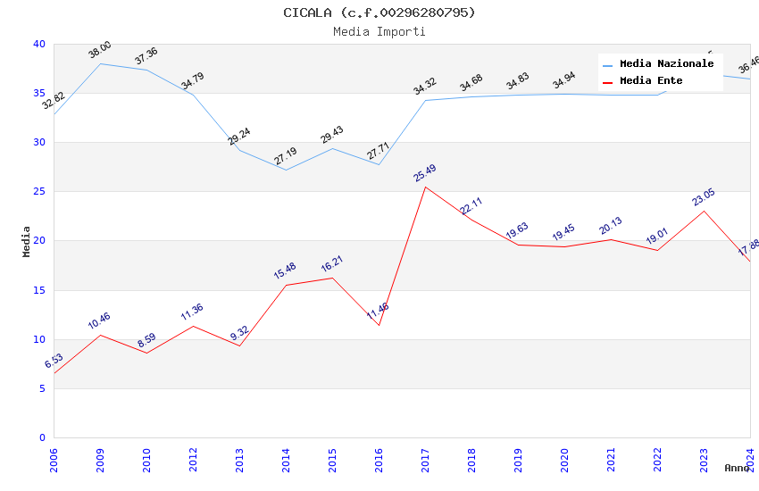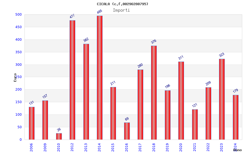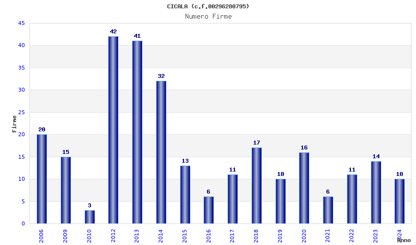 | Anno | Firme | Importi | Media | Naz. | Reg. | Prov. | Comu. |