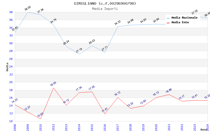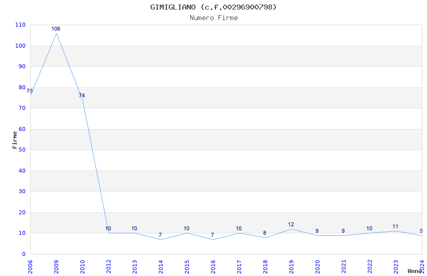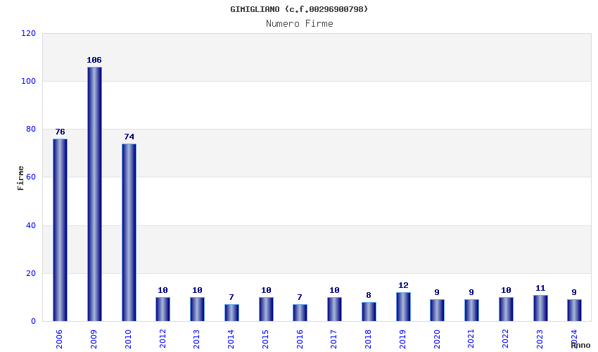 | Anno | Firme | Importi | Media | Naz. | Reg. | Prov. | Comu. |