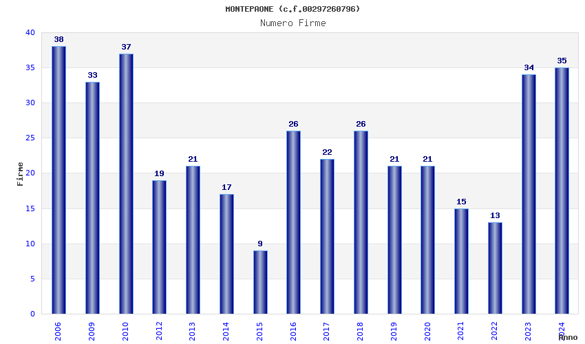 | Anno | Firme | Importi | Media | Naz. | Reg. | Prov. | Comu. |