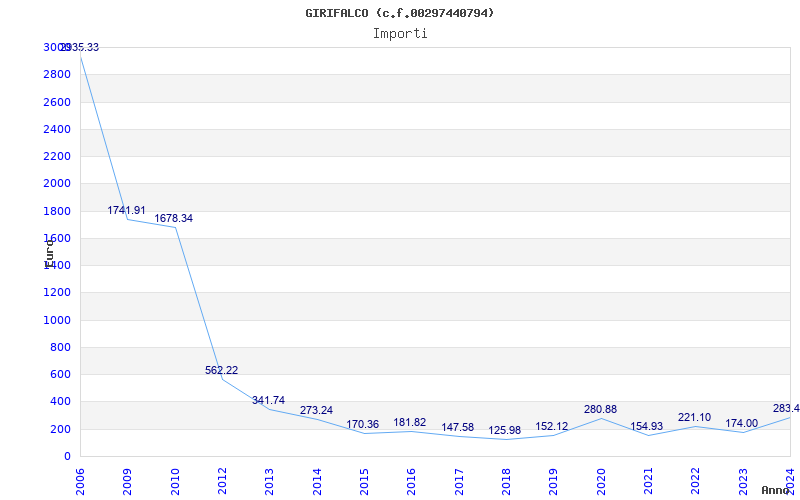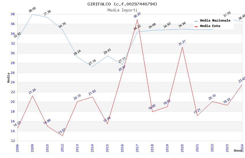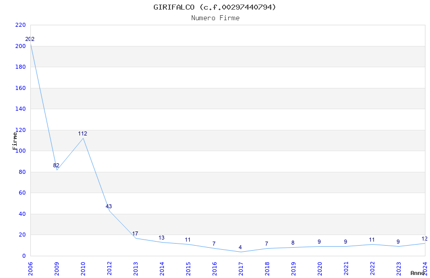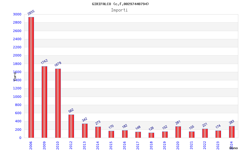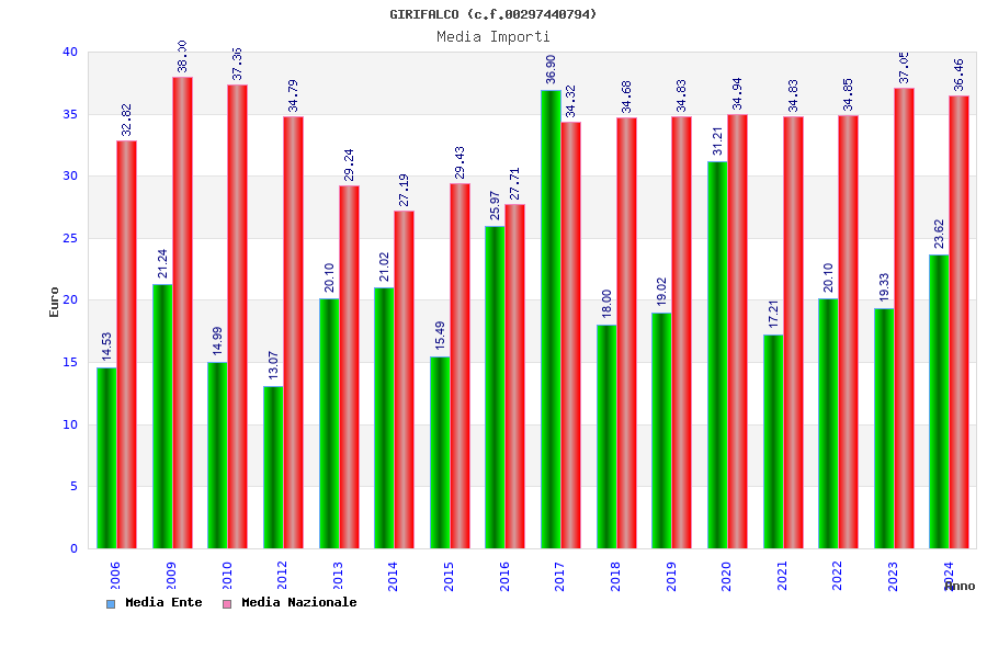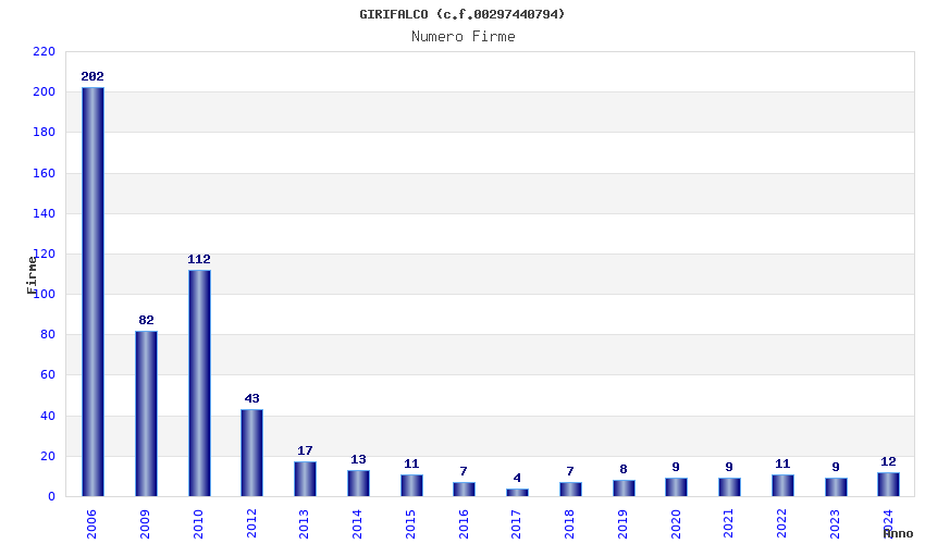 | Anno | Firme | Importi | Media | Naz. | Reg. | Prov. | Comu. |