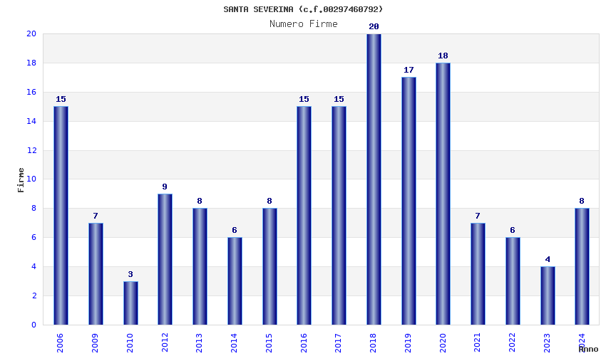 | Anno | Firme | Importi | Media | Naz. | Reg. | Prov. | Comu. |