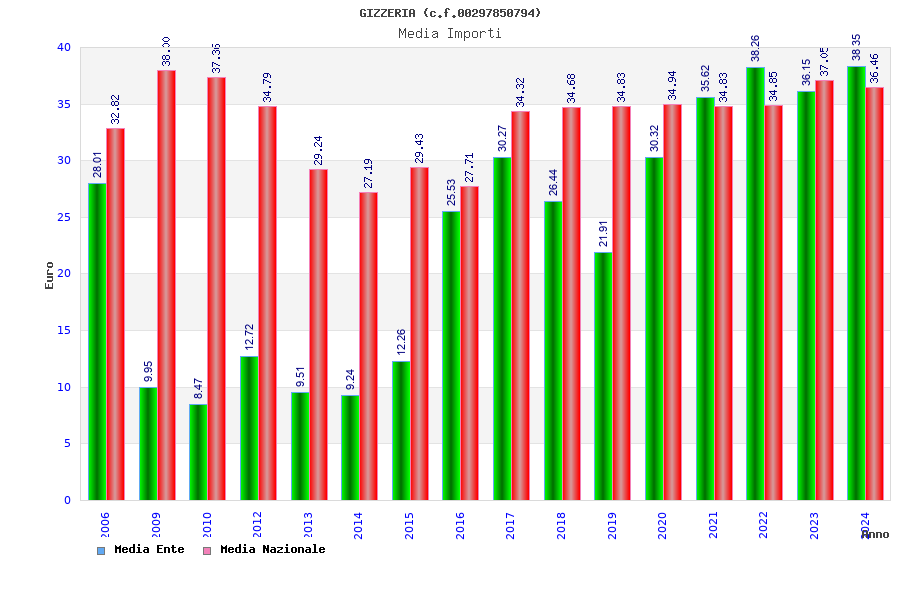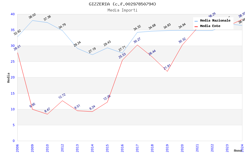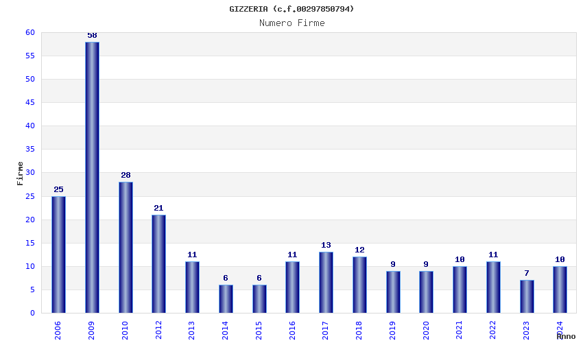 | Anno | Firme | Importi | Media | Naz. | Reg. | Prov. | Comu. |