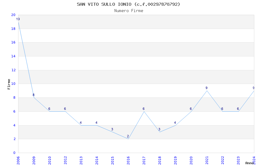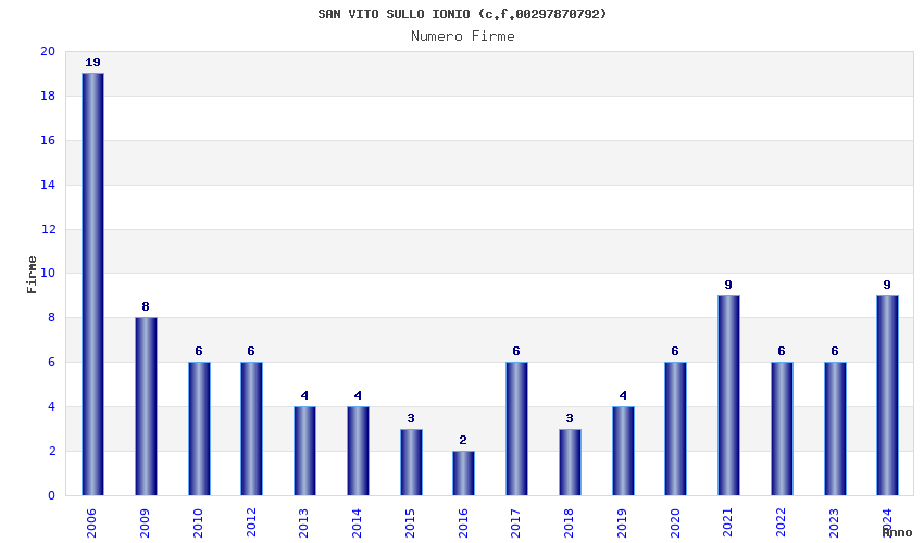 | Anno | Firme | Importi | Media | Naz. | Reg. | Prov. | Comu. |