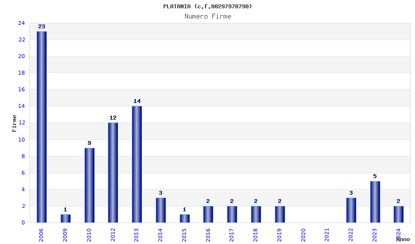| Anno | Firme | Importi | Media | Naz. | Reg. | Prov. | Comu. |
