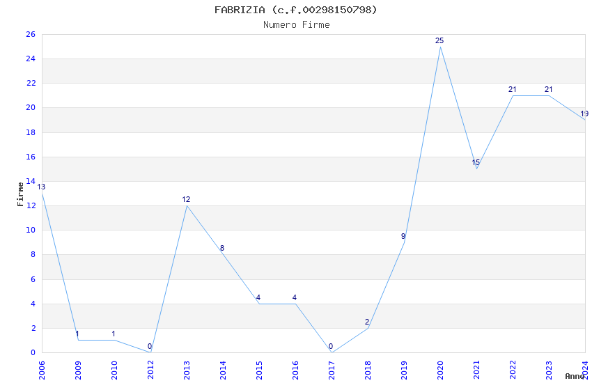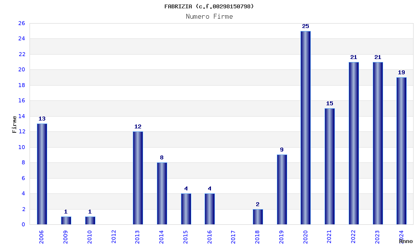 | Anno | Firme | Importi | Media | Naz. | Reg. | Prov. | Comu. |