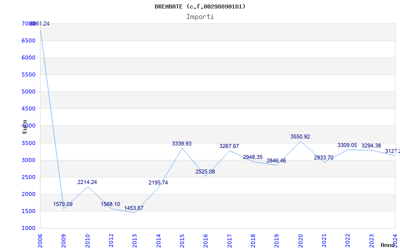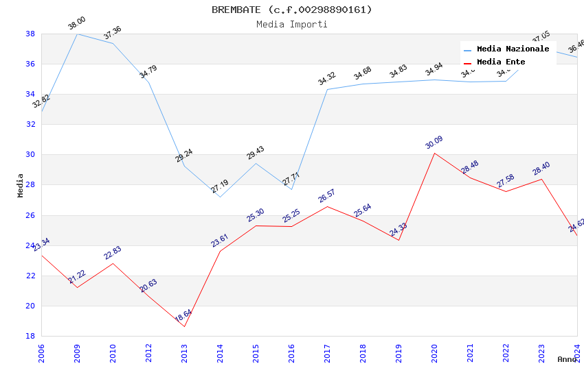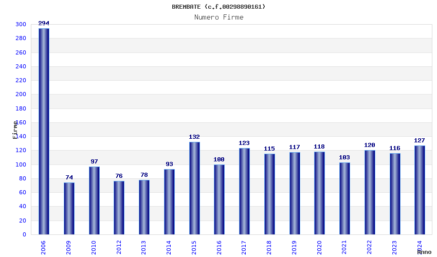 | Anno | Firme | Importi | Media | Naz. | Reg. | Prov. | Comu. |