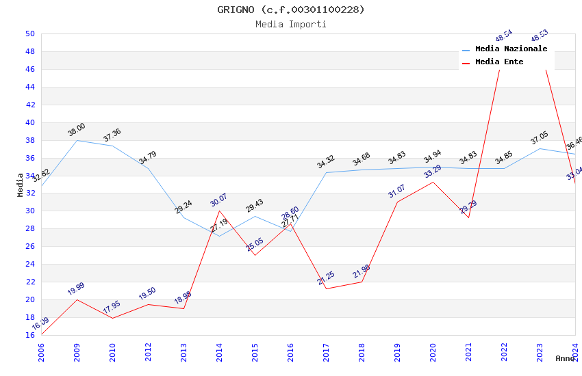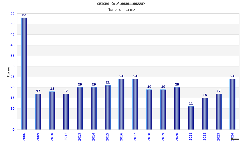 | Anno | Firme | Importi | Media | Naz. | Reg. | Prov. | Comu. |