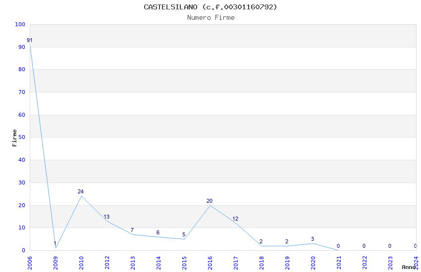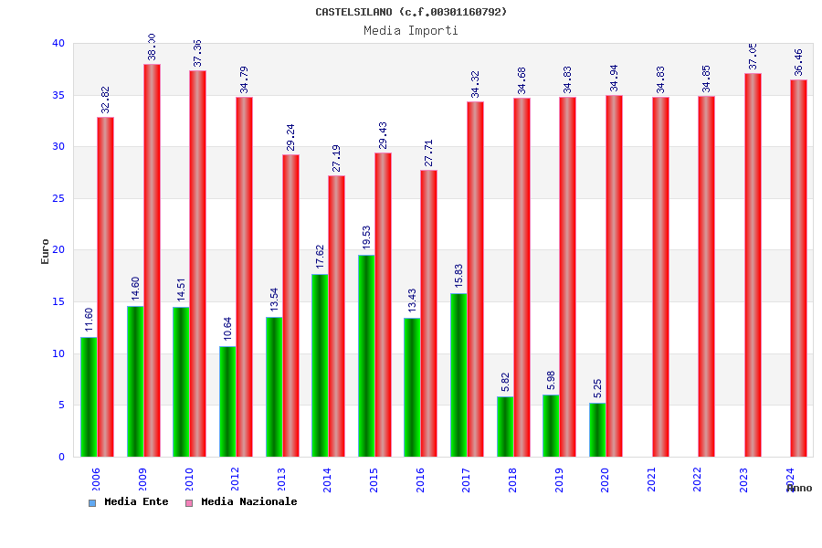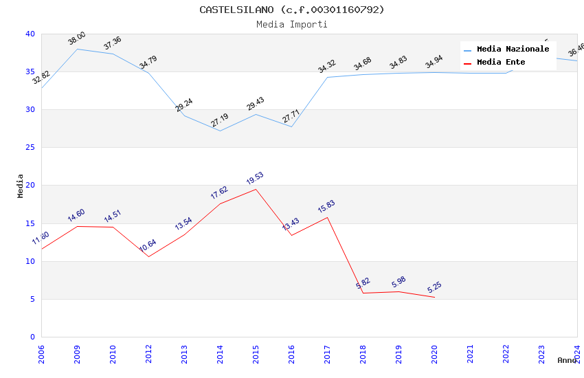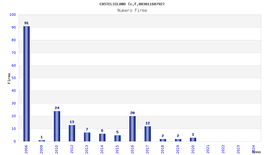 | Anno | Firme | Importi | Media | Naz. | Reg. | Prov. | Comu. |