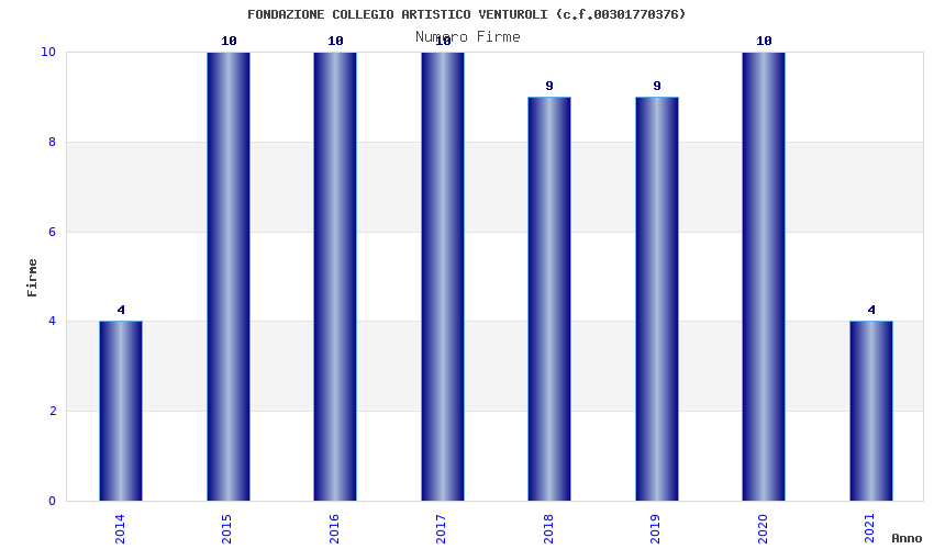 | Anno | Firme | Importi | Media | Naz. | Reg. | Prov. | Comu. |