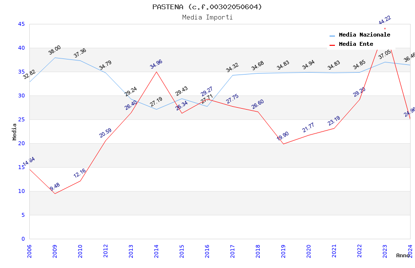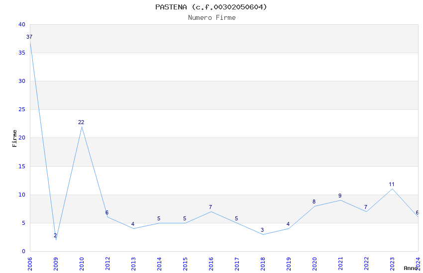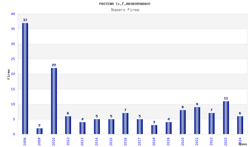 | Anno | Firme | Importi | Media | Naz. | Reg. | Prov. | Comu. |