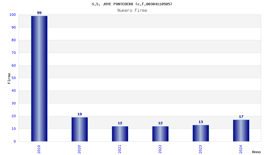 | Anno | Firme | Importi | Media | Naz. | Reg. | Prov. | Comu. |