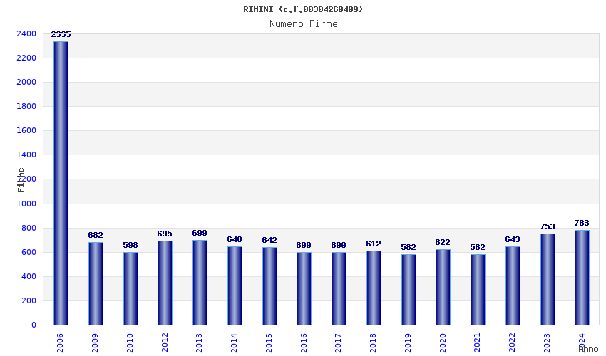 | Anno | Firme | Importi | Media | Naz. | Reg. | Prov. | Comu. |
