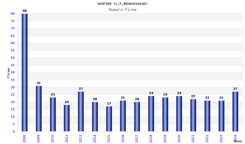 | Anno | Firme | Importi | Media | Naz. | Reg. | Prov. | Comu. |