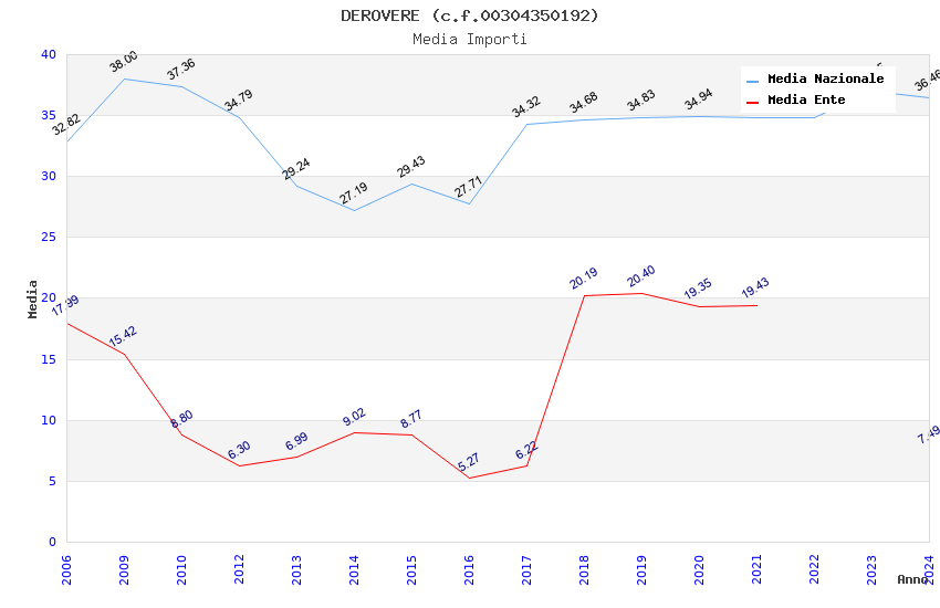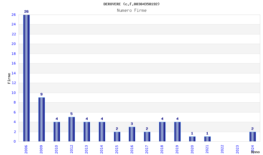 | Anno | Firme | Importi | Media | Naz. | Reg. | Prov. | Comu. |