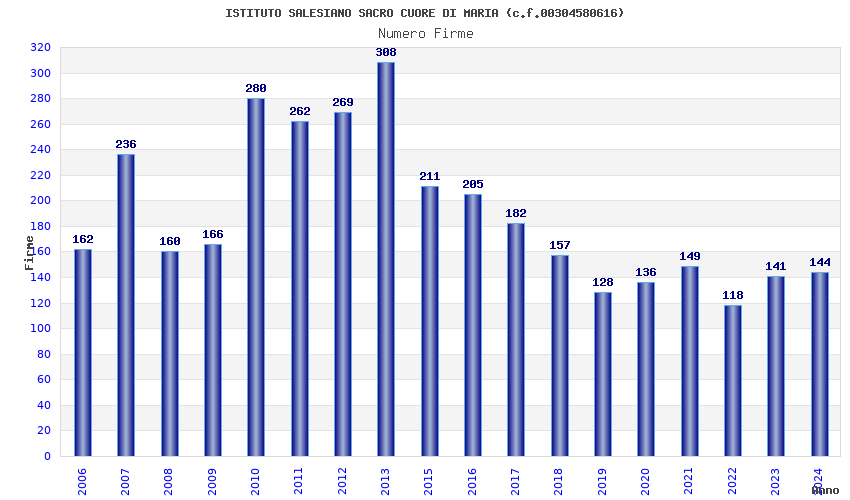 | Anno | Firme | Importi | Media | Naz. | Reg. | Prov. | Comu. |
