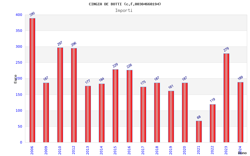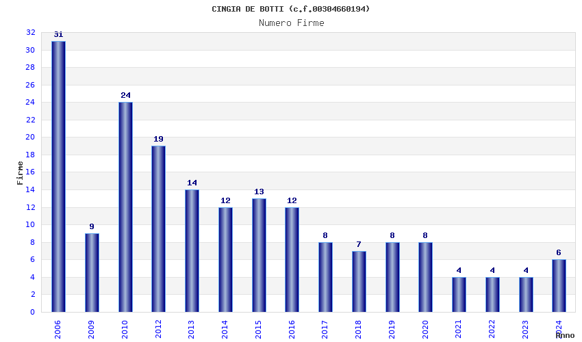 | Anno | Firme | Importi | Media | Naz. | Reg. | Prov. | Comu. |