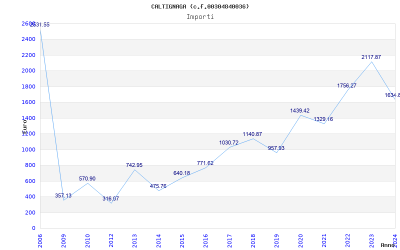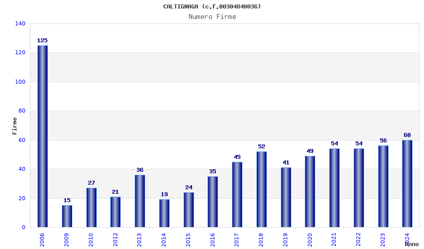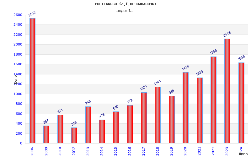 | Anno | Firme | Importi | Media | Naz. | Reg. | Prov. | Comu. |