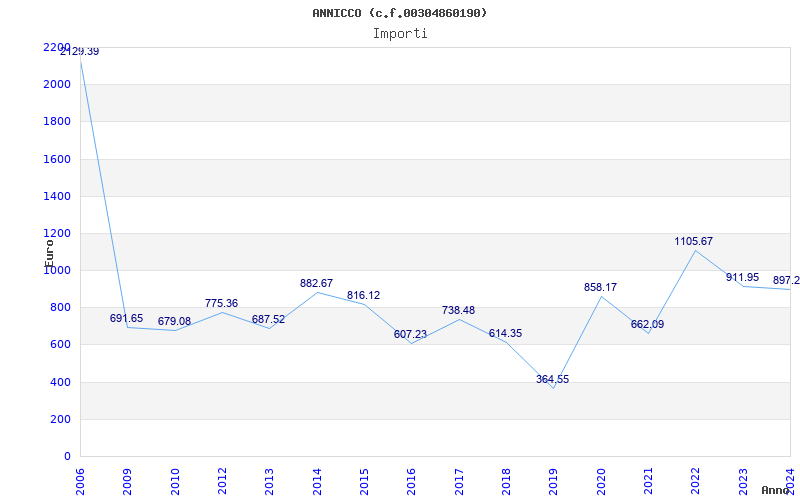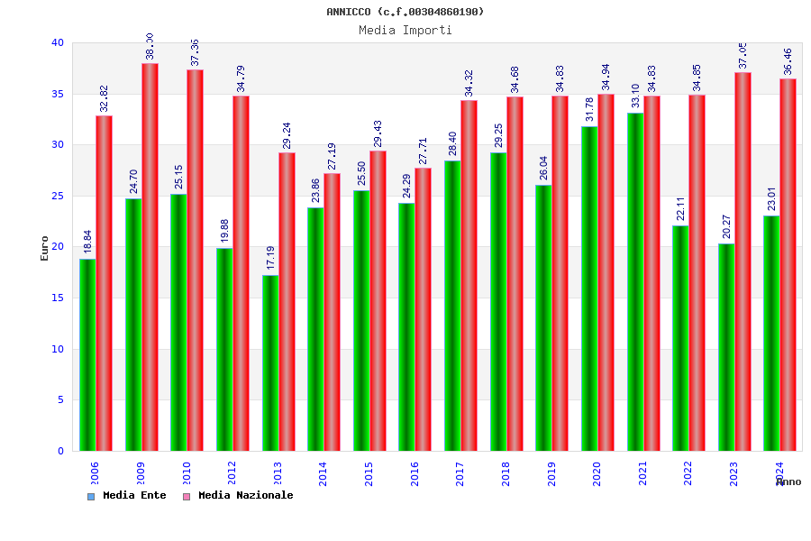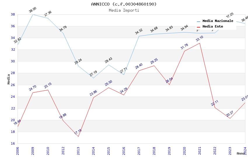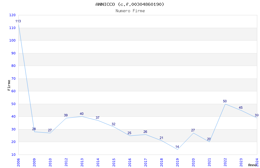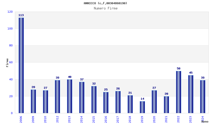 | Anno | Firme | Importi | Media | Naz. | Reg. | Prov. | Comu. |