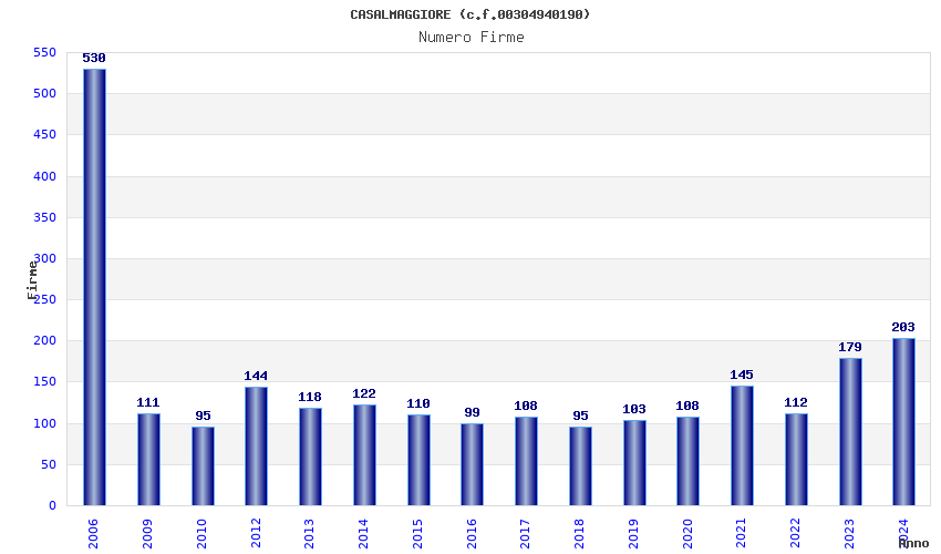 Anno Firme Importi Media Naz. Reg. Prov. Comu.